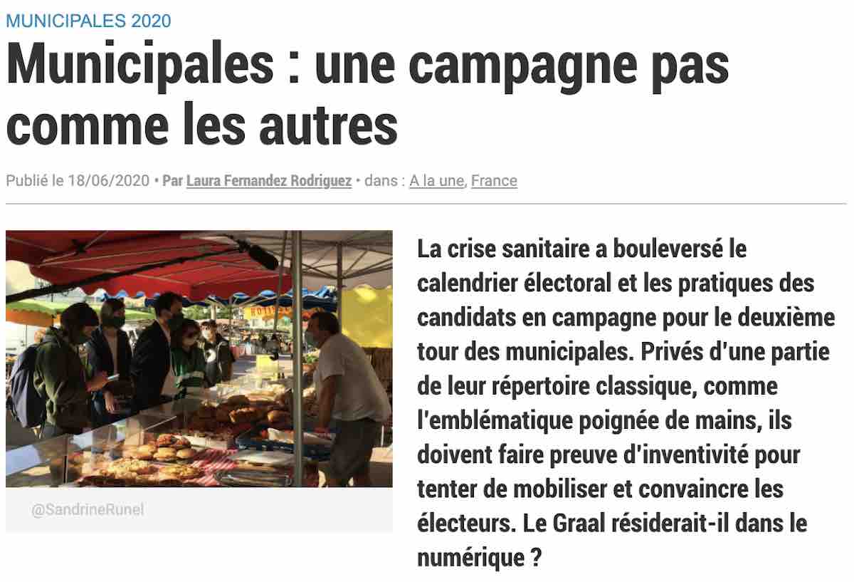 « Le numérique peut être un appui nécessaire à une campagne qui sinon va se faire à travers des masques sur les marchés, sans serrer de mains, quelque part pour faire face à une sorte de déshumanisation induite par le Covid-19. Mais seulement sous réserve de réussir à créer un lien émotionnel avec ses cibles », décrypte Franck Confino, consultant numérique et coordinateur de l’Observatoire social media des territoires. Qui le reconnaît sans détour : « Le terrain reste primordial. On ne peut pas toucher tout le monde via les réseaux sociaux, un candidat qui miserait uniquement là-dessus pour sa campagne aurait peu de chances d’aboutir ».